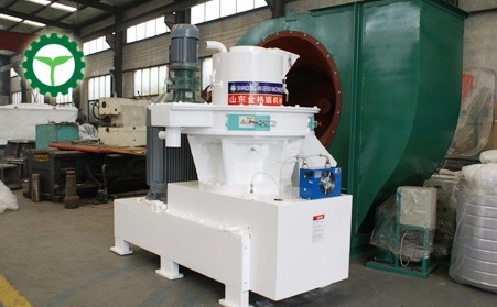 麻豆传媒网站采用电机直联方式运转,电动机通过齿式联轴器与减速机轴联接,经过90°变向,卧式电机传动立式铸件空心转运主轴,主轴再带动压辊碾压模具的内表面完成压制过程。麻豆传媒网站工作时生物质木屑原料由进料口垂直落入,经过压轮的旋转使物料连续均布在模具内腔表面(压辊与模具的接触立面),在压辊的碾压下粉状物料穿过模具的孔(均布在模具内表面的孔)。此过程物料受到高压、高温的作用,产生物理变化或适当的化学变化(根据物料),促使粉状物料形成不断加长的圆柱状实心体,再由断刀切断颗粒,从出料口排出,至此颗粒的压制过程完成。